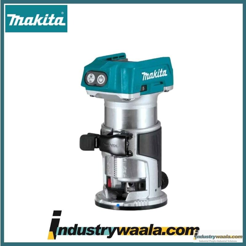 The Makita DRT50Z is a high-performance cordless trimmer designed for precise trimming, routing, and edge-forming tasks. Powered by an 18V LXT battery, this tool combines the power of a brushless motor with the versatility of variable speed control and constant speed under load. Equipped with dual LED lights and a soft start function, it ensures accurate results even in low-light workspaces. Compatible with 6 mm, 8 mm, 1/4", and 3/8" collets (with optional accessories), it offers excellent adaptability across multiple trimming applications.